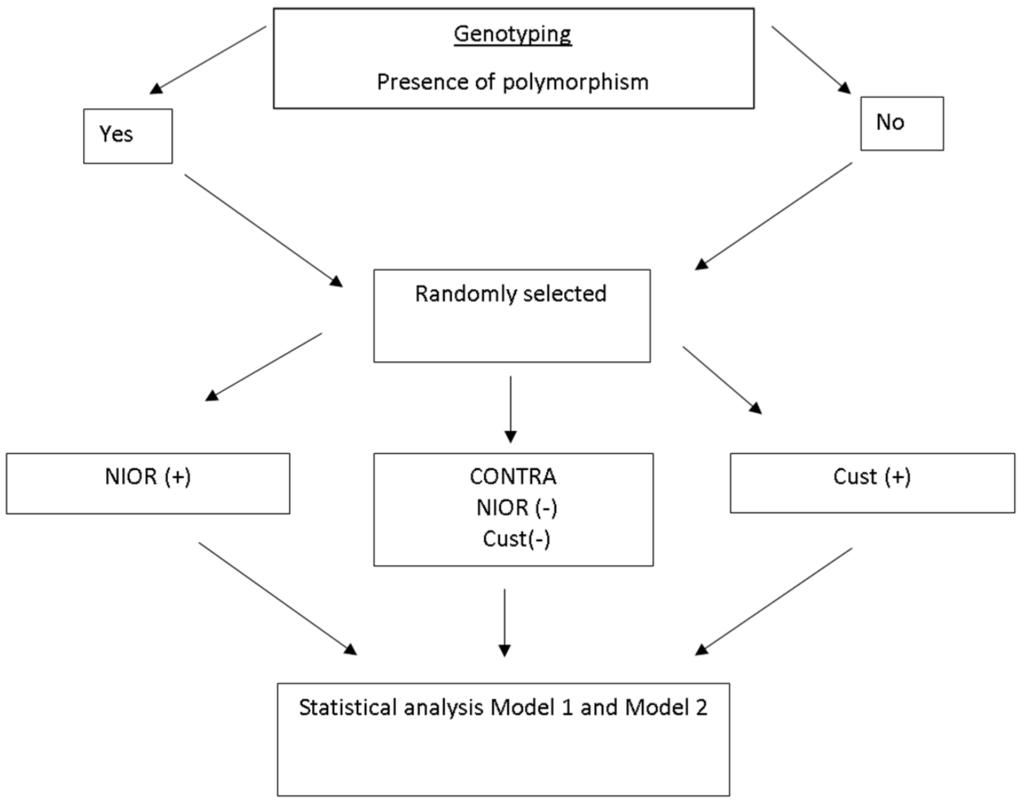 | Content of Diet | NIOR (+) Variant Sensitive for Fat | NIOR (+) Variant Sensitive for Carbohydrate | Cust (+) | CONTRA NIOR NIOR (−) If Variant Was Sensitive for Fat | CONTRA NIOR NIOR (−) If Variant Was Sensitive for Carbohydrate | CONTRA Cust Cust (−) Randomly Selected to Group with Lower Amount of Fat of CHO * |