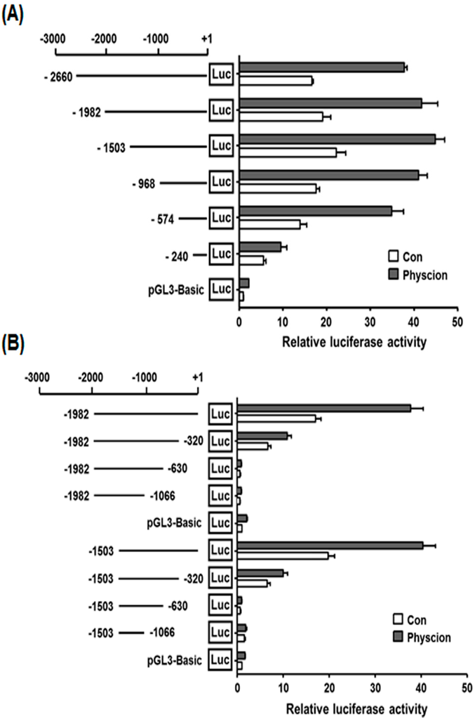 2.5. Identification of Physcion-Responsive Element in the Functional −320/−240 Region of hST8Sia VI Promoter