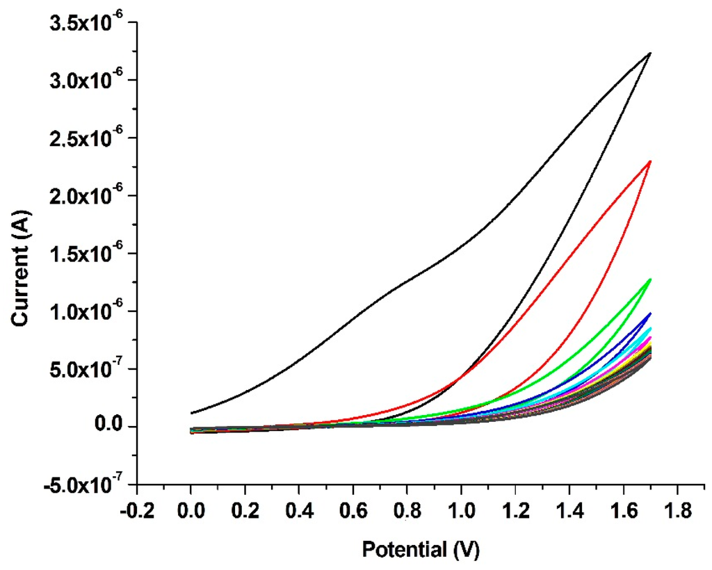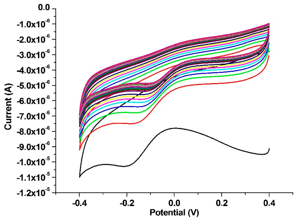 2.3. CV Characterization of the Modified Electrodes