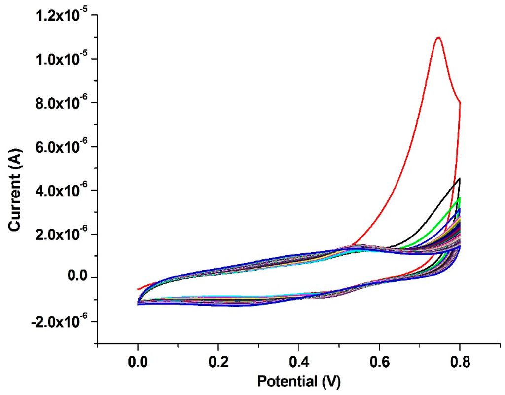 4.5. Electrodeposition of Au Nanoparticles on the Polymer Coated Electrode