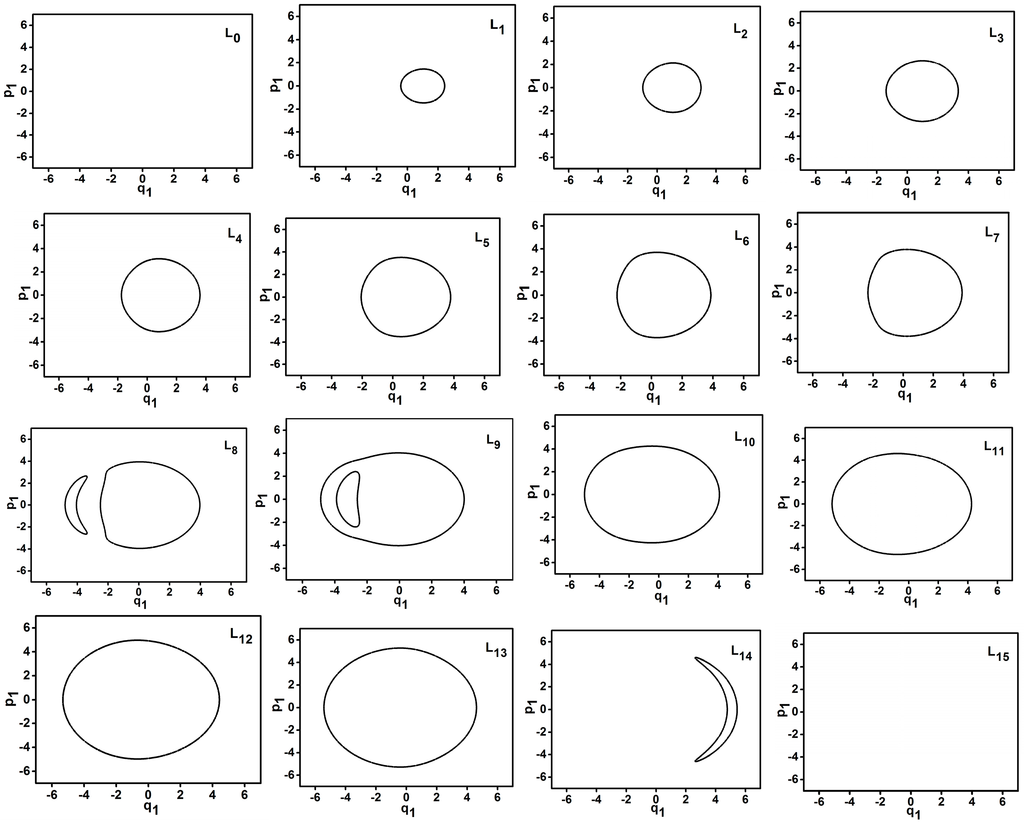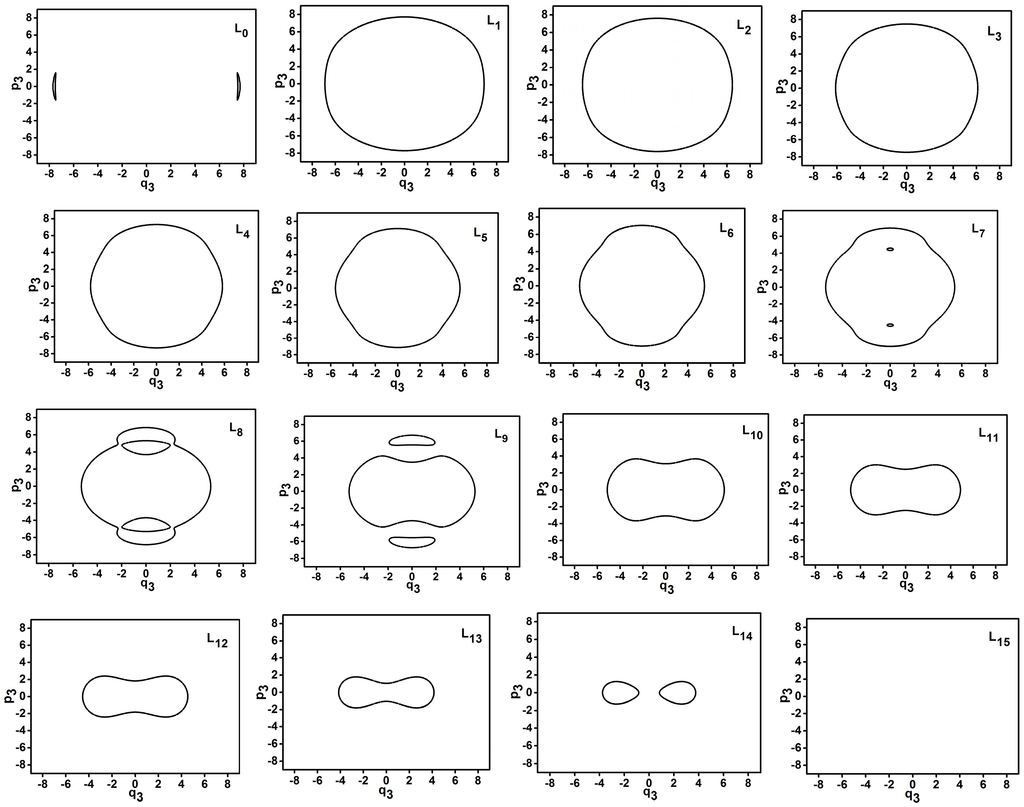 3.2. The Trajectories of Phase Space Study for the Energy Levels under Specific Polyad Number (P = 30)