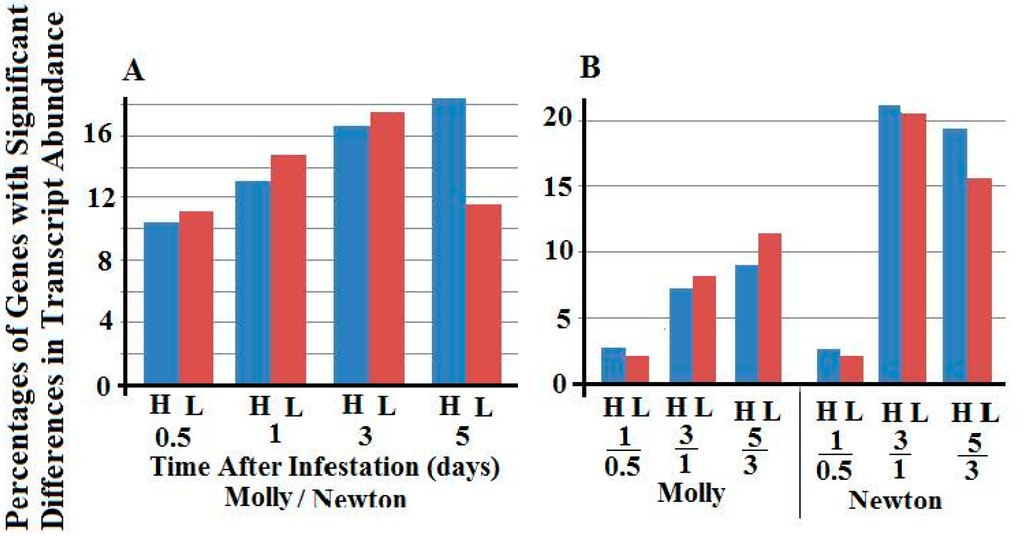 - Li, J.; Zhu, L.; Hull, J.J.; Liang, S.; Daniel, H.; Zhang, X. Transcriptomic analysis reveals a comprehensive insect resistance response mechanism in cotton to infestation by the phloem feeding insect Benisia tabaci (whitefly). Plant Biotechnol. J. 2016, in press. [Google Scholar] [CrossRef] [PubMed]