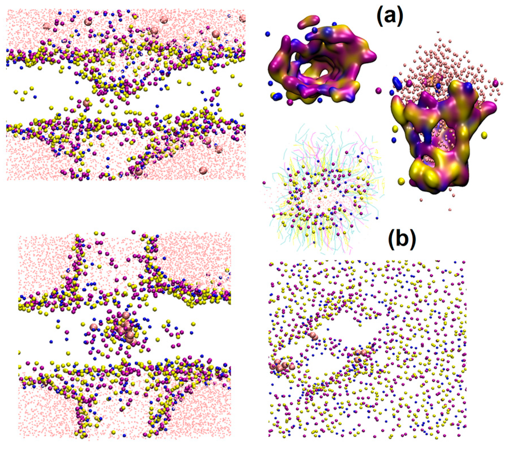 - Marrink, S.J.; de Vries, A.H.; Tieleman, D.P. Lipids on the move: Simulations of membrane pores, domains, stalks and curves. Biochim. Biophys. Acta 2009, 1788, 149–168. [Google Scholar] [CrossRef] [PubMed]