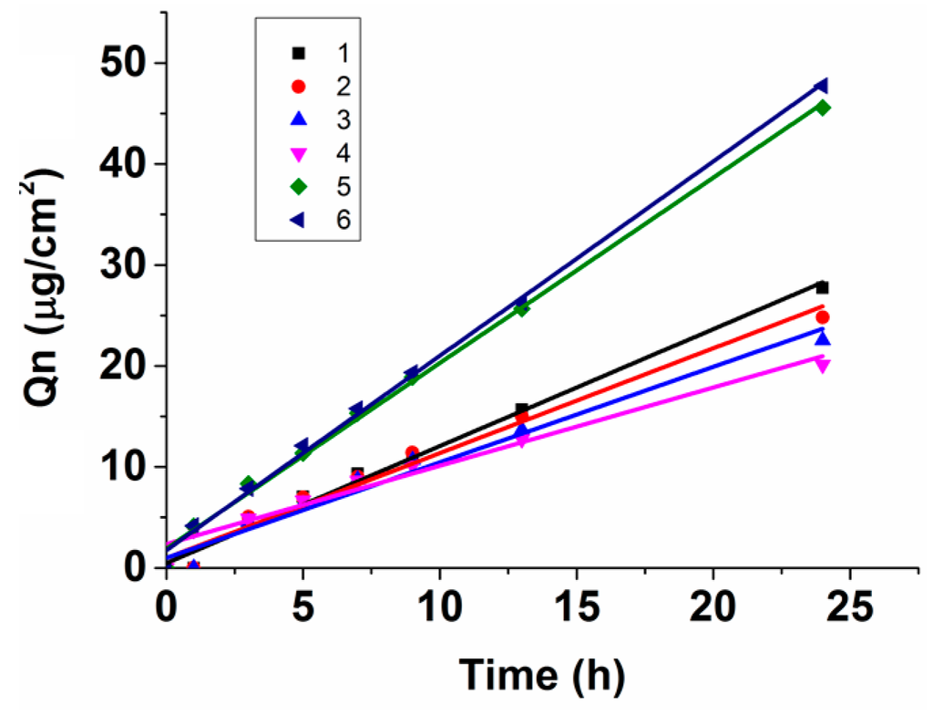 The quantity of drugs that permeated through SC is presented as cumulative amount Qn (μg/cm2) and is calculated using the following formula: