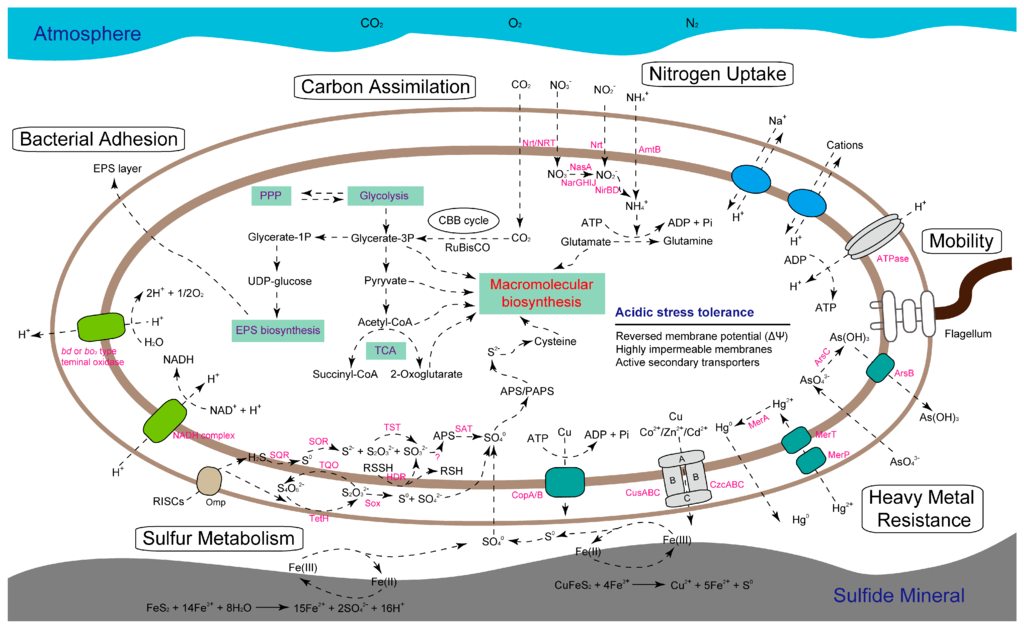 Extraordinarily extreme environments [1,2,3] are the habitats for extremophiles, although they were previously thought of as almost insurmountable physical and chemical barriers to life [4]. These extreme environmental conditions are inhospitable to the growth of most life [5,6]. However, acidophilic microorganisms, especially prokaryotic acidophiles (eubacteria and archaea), are considerably diverse in natural and man-made acidic environments (pH < 3) [7]. Thus, it is of great interest to identify the potential mechanisms that ensure microorganisms survive and proliferate in these extreme environments.