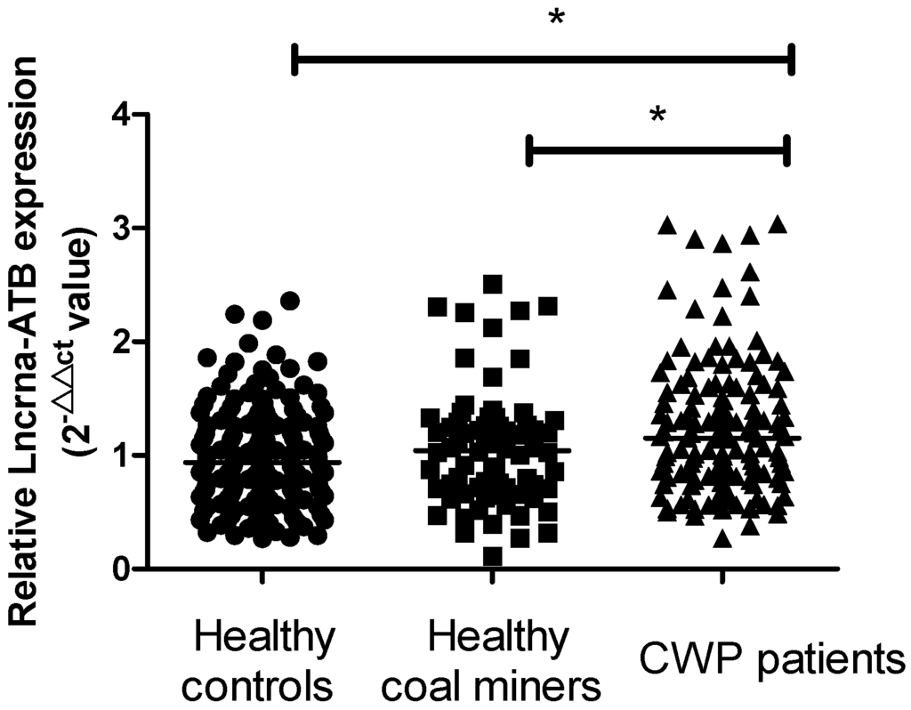 APA StyleMa, J., Cui, X., Rong, Y., Zhou, Y., Guo, Y., Zhou, M., Xiao, L., & Chen, W. (2016). Plasma LncRNA-ATB, a Potential Biomarker for Diagnosis of Patients with Coal Workers’ Pneumoconiosis: A Case-Control Study. International Journal of Molecular Sciences, 17(8), 1367. https://doi.org/10.3390/ijms17081367