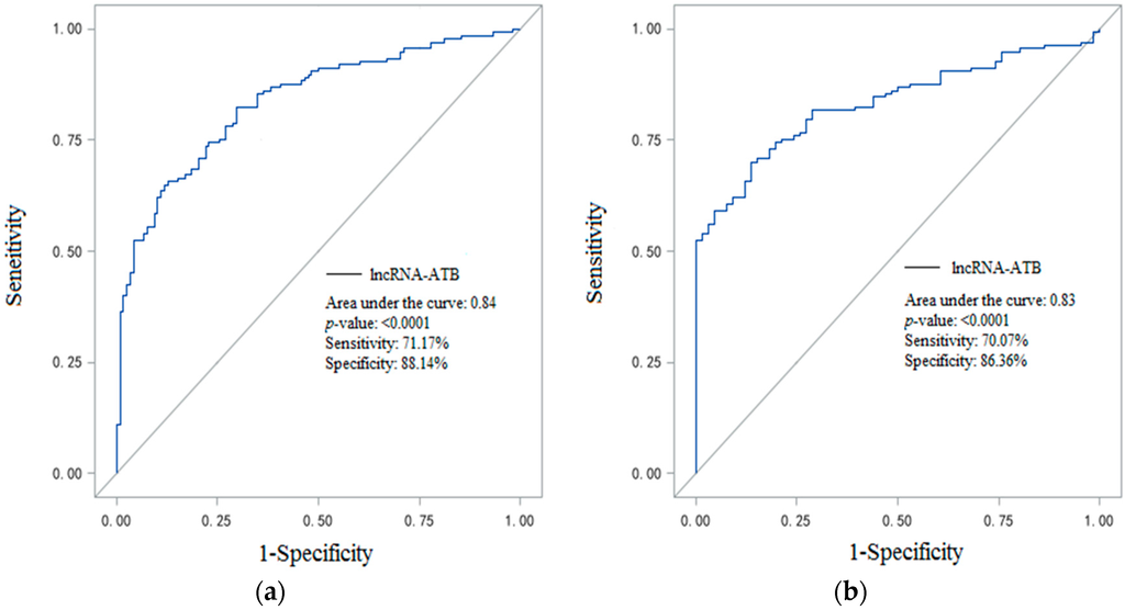 2.1. LncRNA-ATB Expression in the Plasma of All Participants