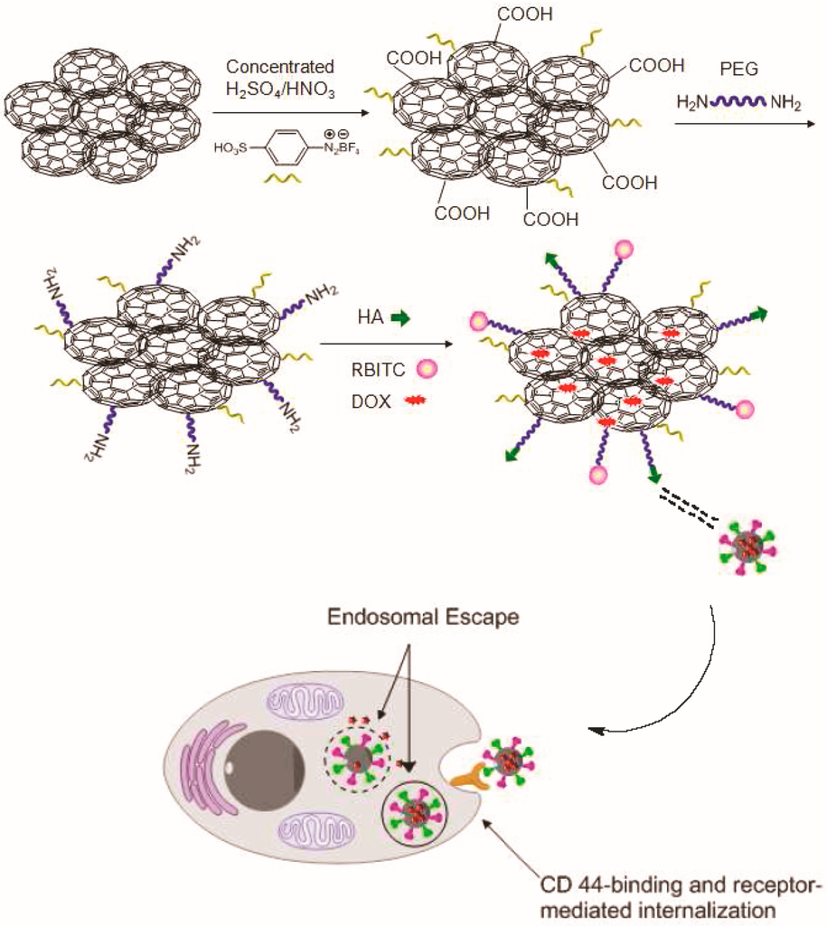 - Cao, X.; Tao, L.; Wen, S.; Hou, W.; Shi, X. Hyaluronic acid-modified multiwalled carbon nanotubes for targeted delivery of doxorubicin into cancer cells. Carbohydr. Res. 2015, 405, 70–77. [Google Scholar] [CrossRef] [PubMed]