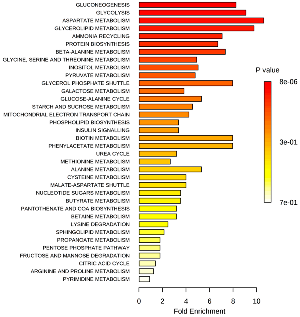 Statistical analysis was executed using Prism (v 6.01, GraphPad Software, La Jolla, CA, USA) and MetaboAnalysit 3.0 []. The charts were created using Microsoft Excel 2013 and Prism (v 6.01, GraphPad Software). Principal component analysis (PCA) and ORA were executed using MetaboAnalyst 3.0. Hierarchical clustered heatmaps were created with MeV (v 4.9, Boston, MA, USA), using Euclidean’s correlation coefficient for distance measurement. For pathway mapping, we used VANTED (v 2.5.3, Seeland, Germany).
