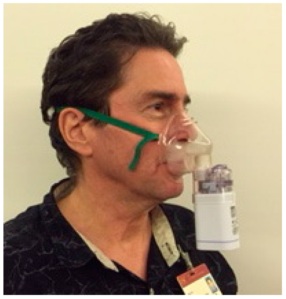 Clinical studies performed in Brazil explored intranasal POH as an option for patients with recurrent glioblastoma. Standard initial therapy for glioblastoma patients consists of surgery, followed by radiation and chemotherapy with temozolomide []. Despite this tripartite effort, the tumors recur in the vast majority of cases, leaving patients without effective treatment options and spelling dismal prognosis. Using a cohort of 37 such recurrent patients, an initial phase I/II study [] administered POH at 55 mg per dose, four times a day (totaling 220 mg per day), via intranasal delivery. Patients self-administered POH with a lightweight, portable, battery-operated nebulizer device (Figure 2). The ease of administration, in combination with the lack of serious side effects, resulted in very high patient compliance (reported as >95% []). In addition, this delivery strategy produced encouraging clinical outcomes (see the details below).