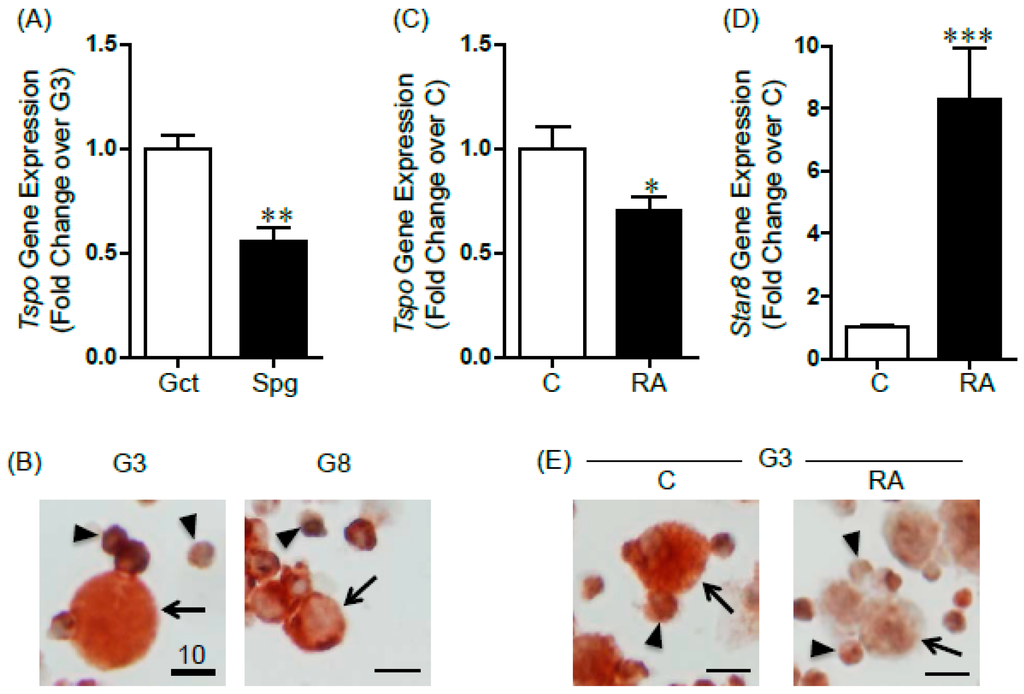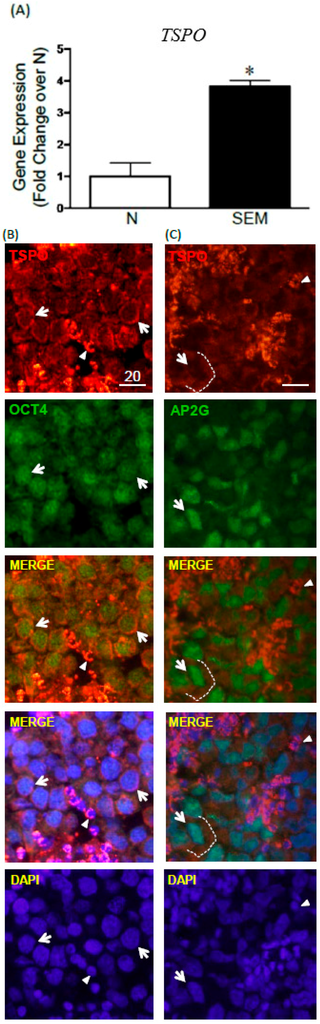 2.1. Changes in TSPO Expression during Gonocyte Differentiation and in Spermatogonia
