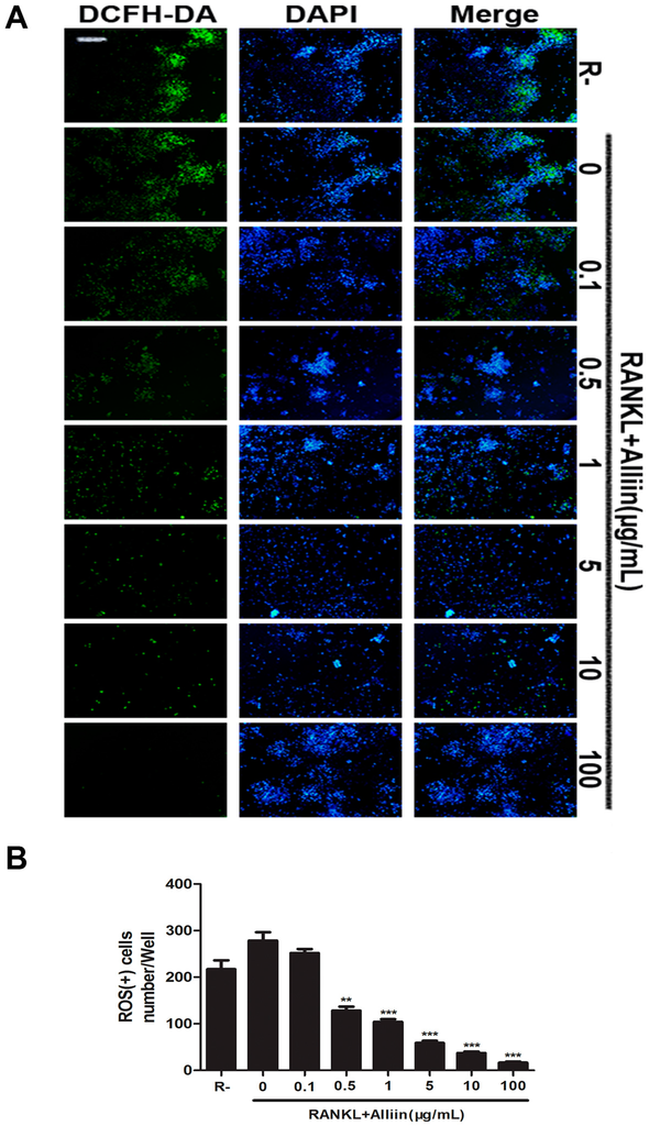 Chicago/Turabian StyleChen, Yueqi, Jingjing Sun, Ce Dou, Nan Li, Fei Kang, Yuan Wang, Zhen Cao, Xiaochao Yang, and Shiwu Dong. 2016. "Alliin Attenuated RANKL-Induced Osteoclastogenesis by Scavenging Reactive Oxygen Species through Inhibiting Nox1" International Journal of Molecular Sciences 17, no. 9: 1516. https://doi.org/10.3390/ijms17091516