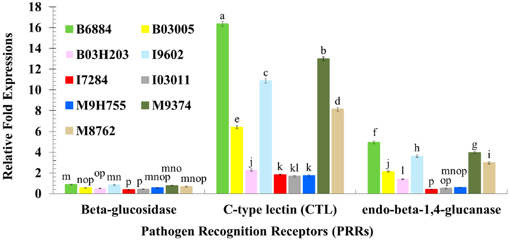 | Beta-glucosidase | KT223628 | 105 bp | Pathogen Recognition Receptor | TATGGCATGGGCCTTGACTG | GGTGTTCTCGGTCTCTCTGG |