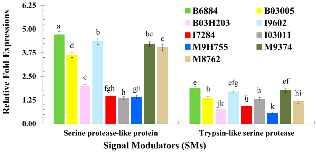 | Serine protease-like protein | KT223631 | 76 bp | Signal Modulation | TTTGTCTGACCGCACCAAGT | TACCGAGCACCATCCACAAC |