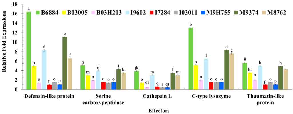 | Defensin-like protein | KT223639 | 86 bp | Effector | AGGCTGCAGCTATCAAGGAA | AGTGGTGCCTCCATTGTGAC |