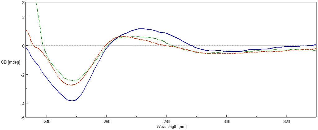 - Guedin, A.; Lacroix, L.; Mergny, J.-L. Thermal melting studies of ligand DNA interactions. In Drug-DNA Interaction Protocols, 2nd ed.; Fox, K.R., Ed.; Humana Press: New York, NY, USA, 2010; Volume 613, pp. 25–35. [Google Scholar]