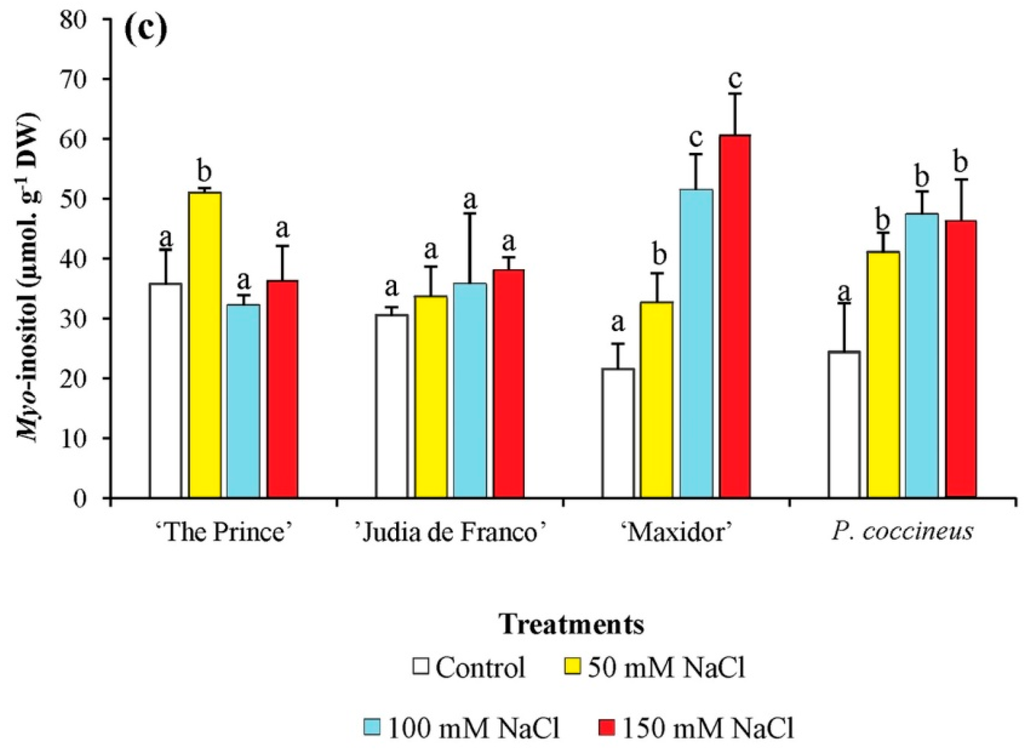 - Bahena-Betancourt, L.; Macias-Rodríguez, L.; Bayuelo-Jiménez, J.S. Contents of Carbohydrates in Salt-Stressed Phaseolus Species; Annual Report of the Bean Improvement Cooperative; United States Department of Agriculture: Fort Collins, CO, USA, 2006; pp. 233–234.