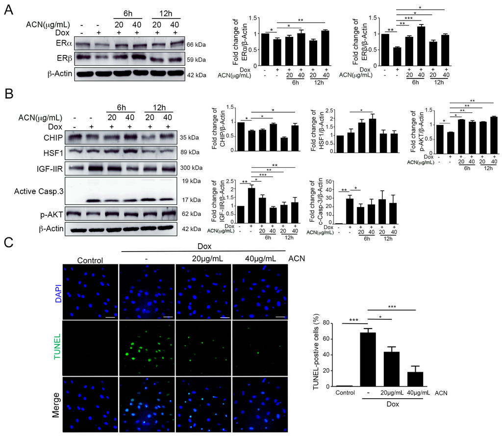 2.3. Effects of ACN Were Attenuated by ER Antagonist ICI 182780