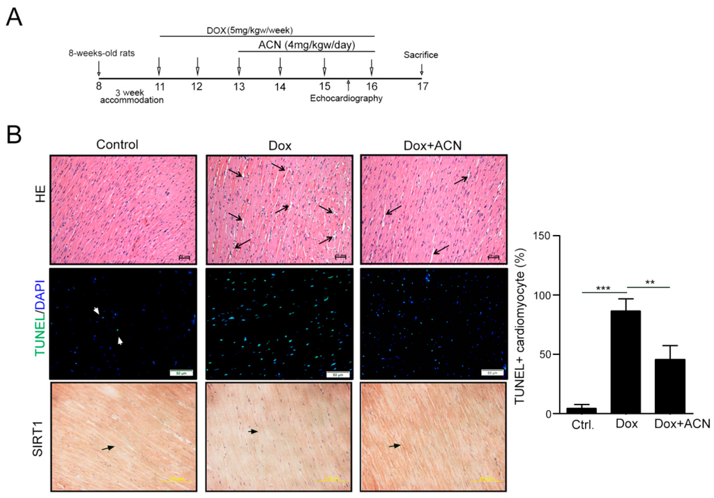 2.4. Function Recovering Effect of ACN in Dox-Treated Hearts in Vivo
