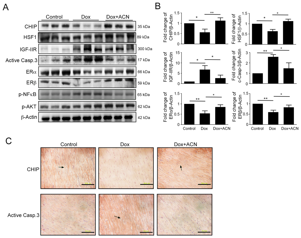 2.2. ACN Rescued Dox-Induced up-Rregulation of the IGF-IIR-Mediated Apoptosis Pathway
