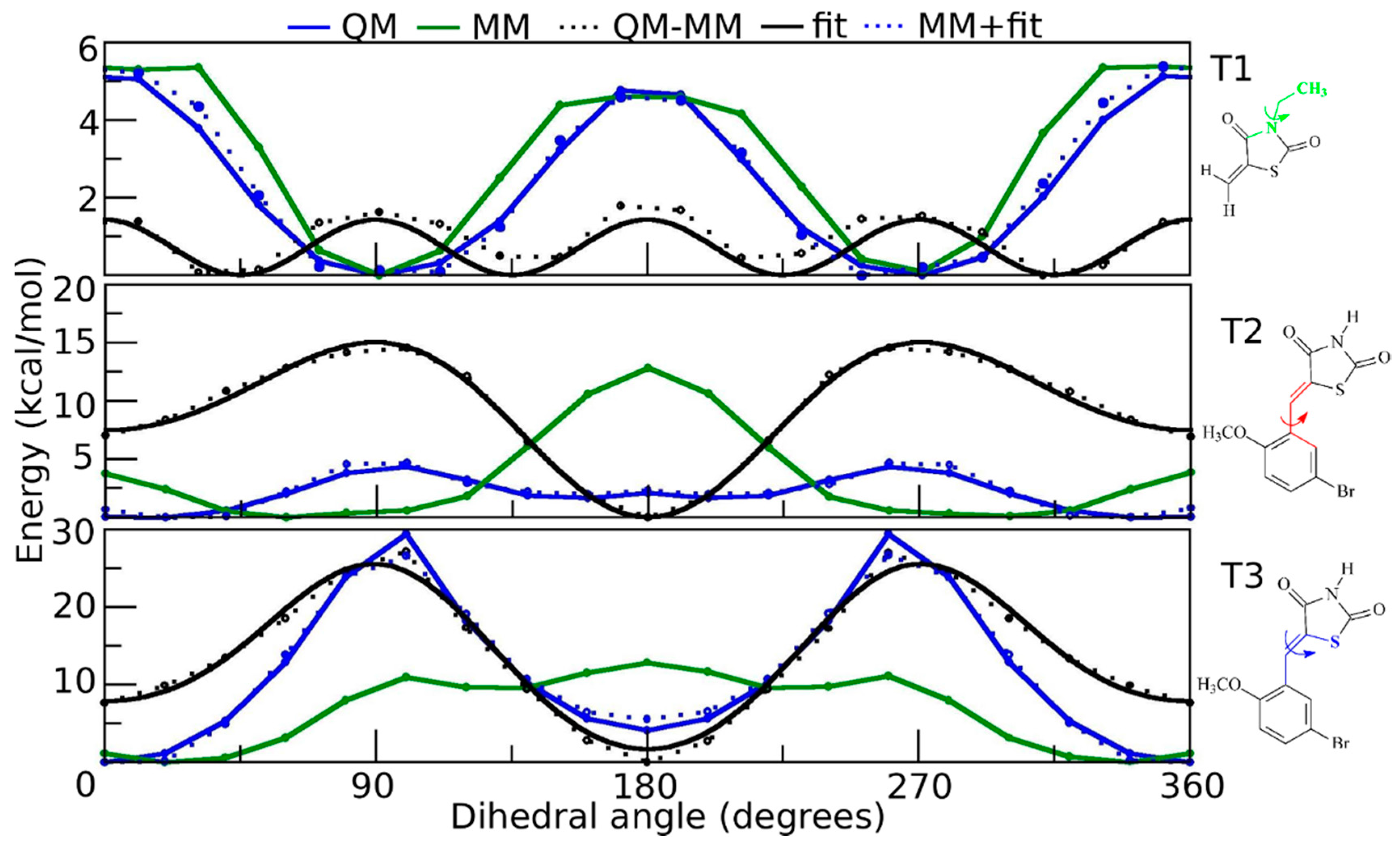 - Mackerell, A.J.; Feig, M.; Brooks, C. Extending the treatment of backbone energetics in protein force fields: Limitations of gas-phase quantum mechanics in reproducing protein conformational distributions in molecular dynamics simulations. J. Comput. Chem. 2004, 25, 1400–1415. [Google Scholar] [CrossRef] [PubMed]