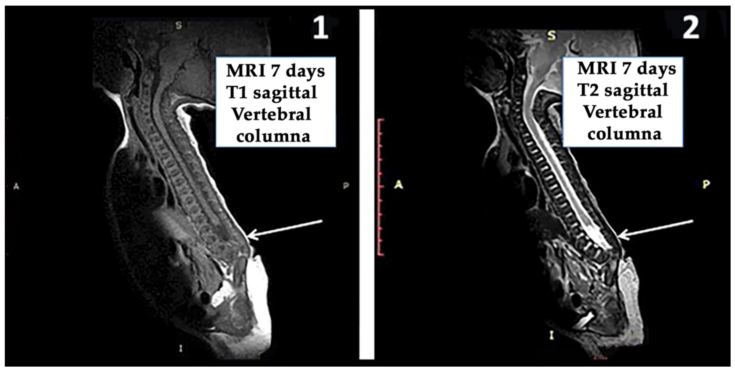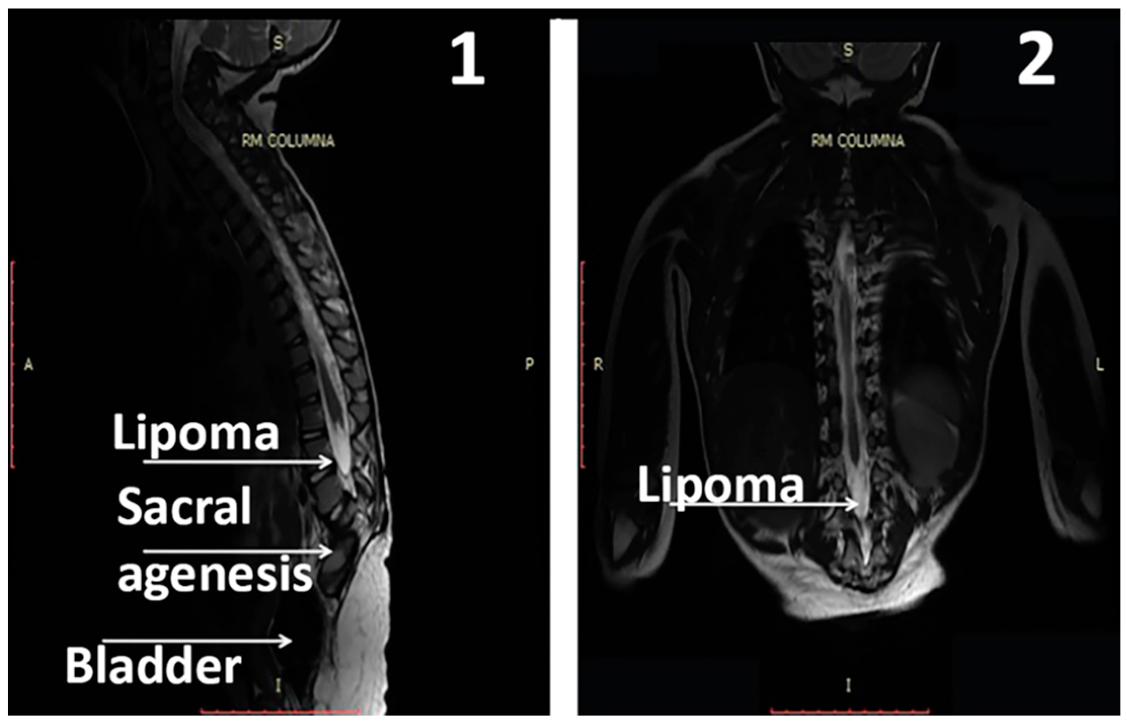 Figure 4), as well as the existence of sacral agenesis and a hypertense signal of fat intensity most likely corresponding to a lipoma.