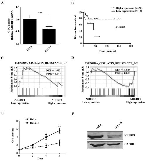 2.1. NHERF1 Expression Is Downregulated in Cisplatin-Resistant HeLa Cells