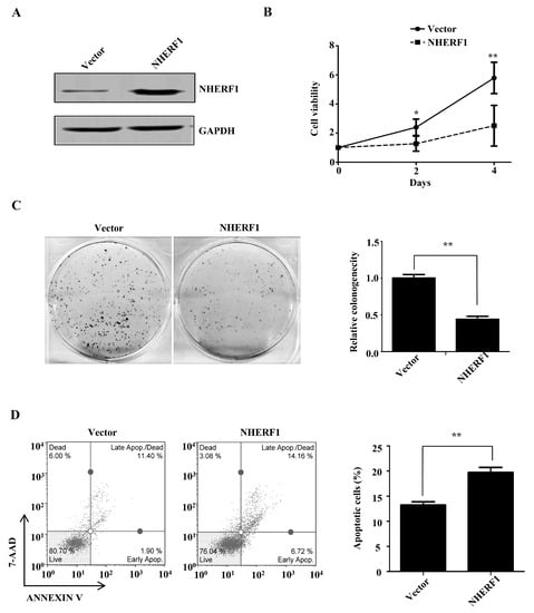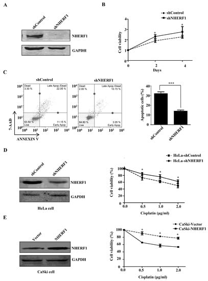 2.2. NHERF1 Regulates Cisplatin Sensitivity in Cervical Cancer Cells