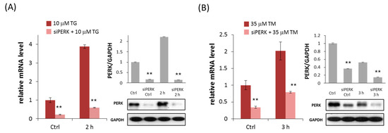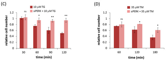 2.1. Silencing of PERK Increases Cell Viability with Respect to Endoplasmic Reticulum (ER) Stress
