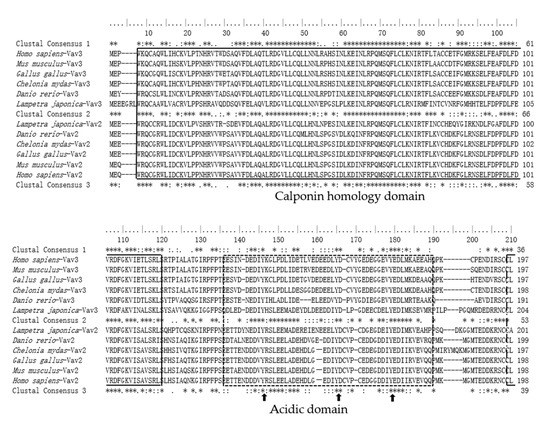 2.1. Identification of Lamprey Vav3 Sequence