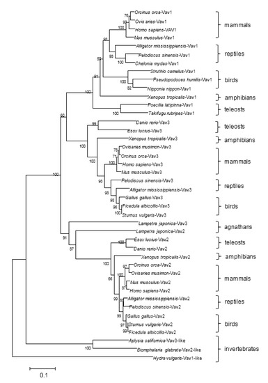 2.2. Phylogenetic Analysis of the Vav Family