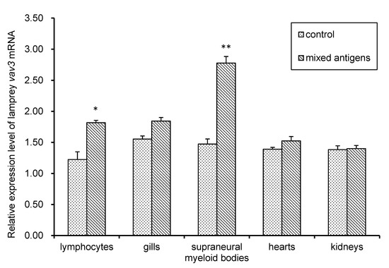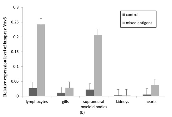 Shen, Y.; Zhang, Y.; Han, Y.; Su, P.; Gou, M.; Pang, Y.; Li, Q.; Liu, X. A Novel Vav3 Homolog Identified in Lamprey, Lampetra japonica, with Roles in Lipopolysaccharide-Mediated Immune Response. Int. J. Mol. Sci. 2017, 18, 2035. https://doi.org/10.3390/ijms18102035