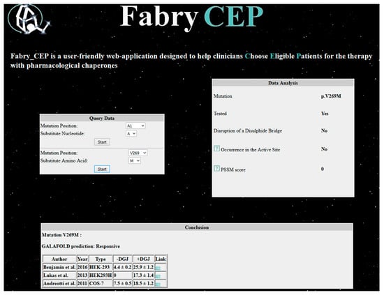 PubMed can be searched with the keywords “Fabry AND Database AND User friendly”; fabry-database and FABRY_CEP are disease specific and require only the introduction of the missense mutation.