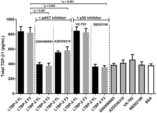 2.6. LTBP-2 Stimulates the Expression of TGF-β1 via Akt and p38 MAPK Signalling Pathways