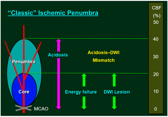 - Hossmann, K.A. Viability thresholds and the penumbra of focal ischemia. Ann. Neurol. 1994, 36, 557–565. [Google Scholar] [CrossRef] [PubMed]