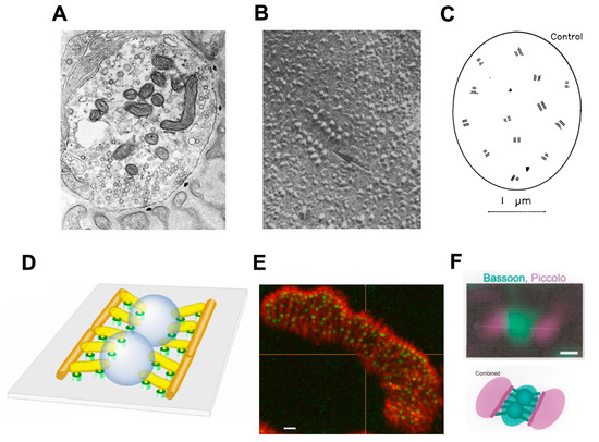 - Szule, J.A.; Jung, J.H.; McMahan, U.J. The structure and function of ‘active zone material’ at synapses. Philos. Trans. R Soc. Lond. B Biol. Sci. 2015, 370. [Google Scholar] [CrossRef] [PubMed]