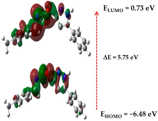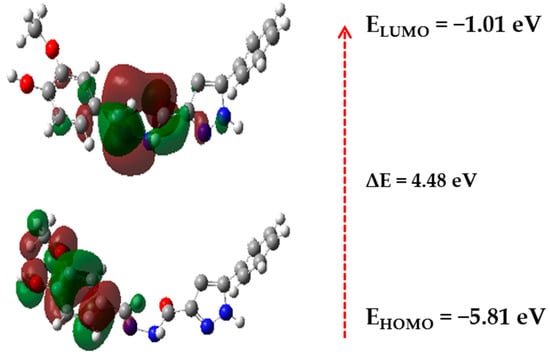 The HOMO of L1 shows the charge density localized on the 4-hydroxy-3-methoxybenzaldehyde ring, while LUMO is characterized by a charge distribution on the hydrazone function, indicating that this moiety can influence the electron transition. The HOMO of L2 has a localized charge density on the pyrazole and hydrazone function, but LUMO is characterized by a charge distribution on the 4-methylbenzaldehyde ring and the hydrazone function. The energy difference between HOMO and LUMO of L1 and L2 is about 4.38 and 5.75 eV, respectively.