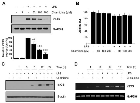 2.3. Cl-Amidine Suppresses iNOS Expression