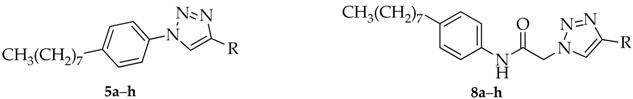 3.3. Synthesis of 1,4-Disubstituted 1,2,3-Triazoles 5a–5h