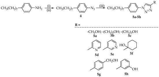 3.3.2. Synthesis of (1-(4-Octylphenyl)-1H-1,2,3-triazol-4-yl)methanol (5a)