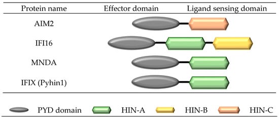 - Schattgen, S.A.; Fitzgerald, K.A. The PYHIN protein family as mediators of host defenses. Immunol. Rev. 2011, 24, 109–118. [Google Scholar] [CrossRef] [PubMed]