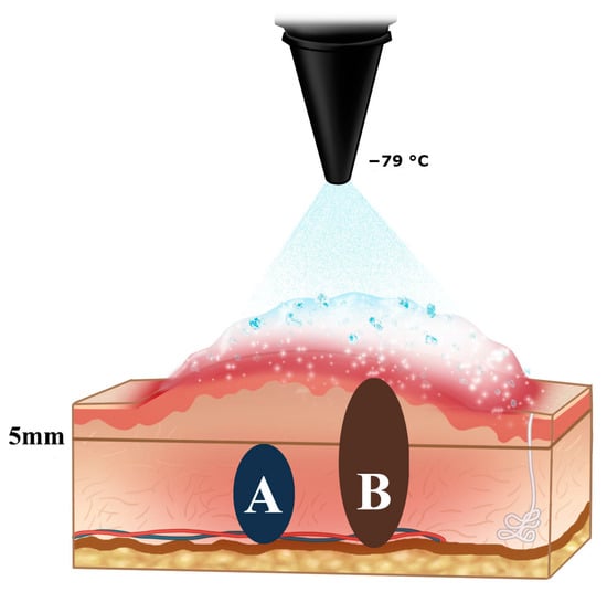 - Weshahy, A.H. Intralesional cryosurgery. A new technique using cryoneedles. J. Dermatol. Surg. Oncol. 1993, 19, 123–126. [Google Scholar] [CrossRef] [PubMed]