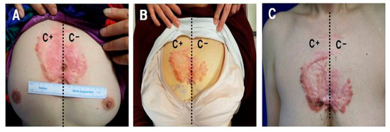 - Ogawa, R. Keloid and Hypertrophic Scars Are the Result of Chronic Inflammation in the Reticular Dermis. Int. J. Mol. Sci. 2017, 18, 606. [Google Scholar] [CrossRef] [PubMed]