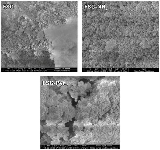 SEM images of FSG, FSG-NH2, and FSG-Pyr.