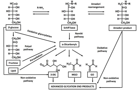 - Goh, S.-Y.; Cooper, M.E. Clinical review: The role of advanced glycation end products in progression and complications of diabetes. J. Clin. Endocrinol. Metab. 2008, 93, 1143–1152. [Google Scholar] [CrossRef] [PubMed]