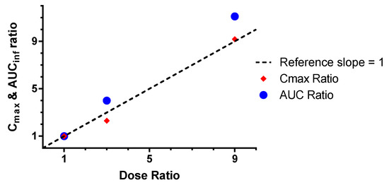 Dose proportionality in the CSF after IT dosing as measured by Cmax and AUCinf ratios.