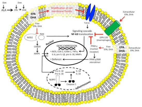 1.2.5. n-3 PUFAs, Innate Immunity, the Inflammasome, and Microbiome