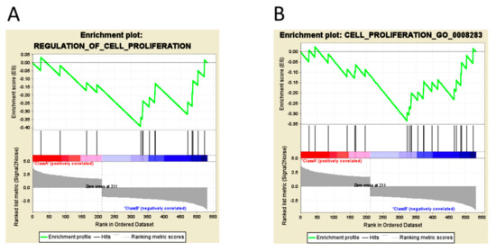 GSEA (Available online: http://software.broadinstitute.org/gsea/index.jsp, accessed on 13 September 2017) is software used to compare two sets of gene expression data and determine which group has upregulated biological processes or pathways [90].