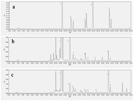 - Chen, S.B.; Liu, H.P.; Tian, R.T.; Yang, D.J.; Chen, S.L.; Xu, H.X.; Xie, P.S. High-performance thin-layer chromatographic fingerprints of isoflavonoids for distinguishing between Radix Puerariae Lobate and Radix Puerariae Thomsonii. J. Chromatogr. A 2006, 1121, 114–119. [Google Scholar] [CrossRef] [PubMed]