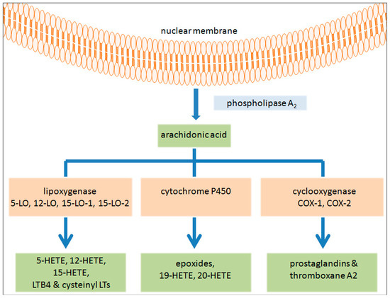 - Folco, G.; Murphy, R.C. Eicosanoid transcellular biosynthesis: From cell-cell interactions to in vivo tissue responses. Pharmacol. Rev. 2006, 58, 375–388. [Google Scholar] [CrossRef] [PubMed]